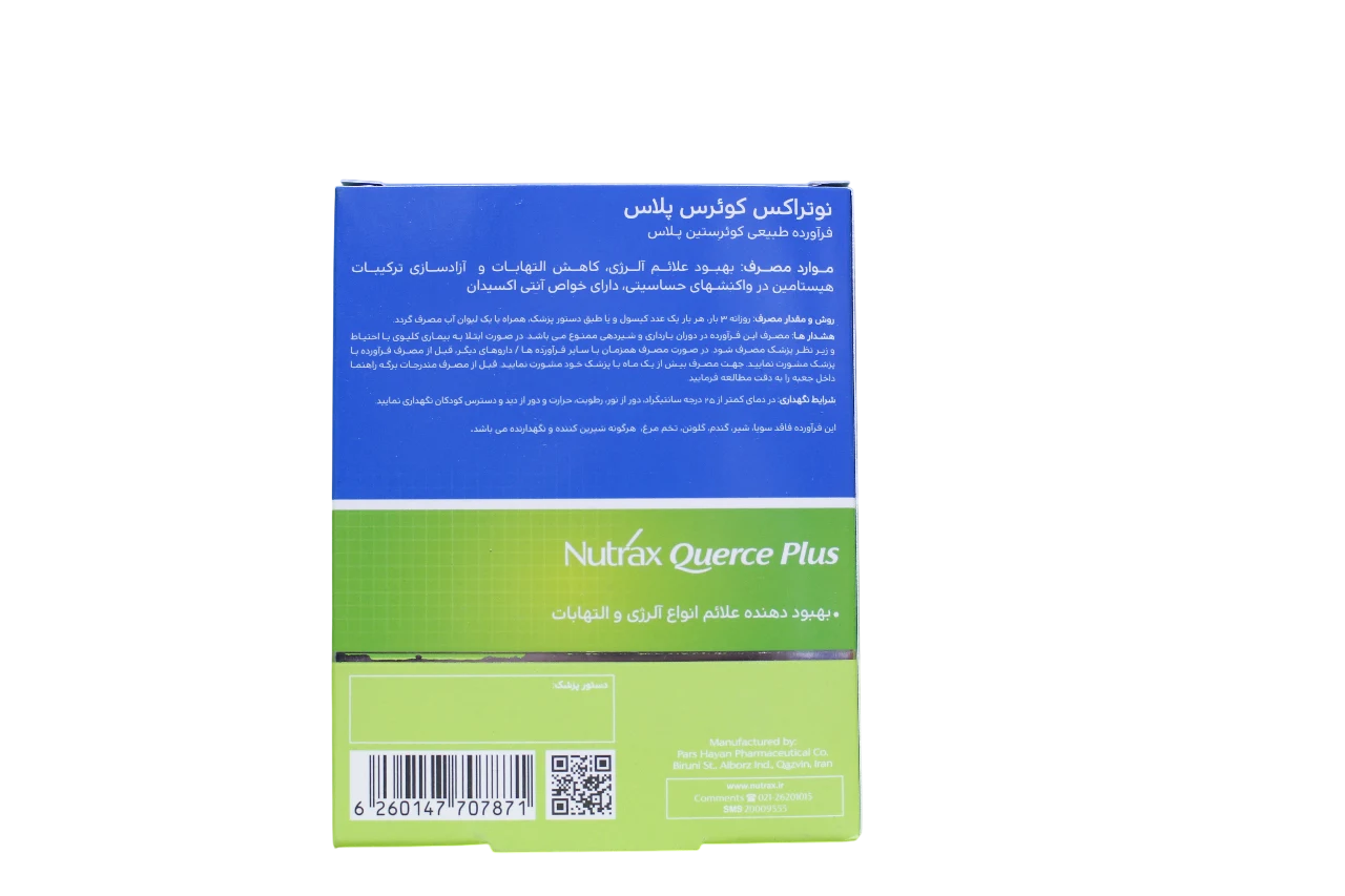 کپسول نوتراکس کوئرس پلاس یک مکمل تخصصی ضد آلرژی است که با ترکیب کوئرستین، عصاره هسته انگور و بروملین به کاهش علائم حساسیتهای فصلی و آلرژیهای تنفسی کمک میکند.