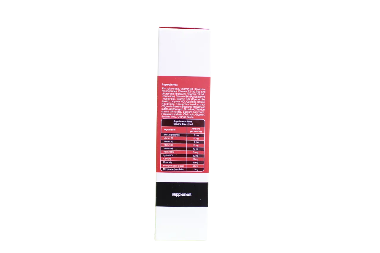 • دارای لیزین، کارنیتین و رویال ژلی برای تقویت سیستم بدن